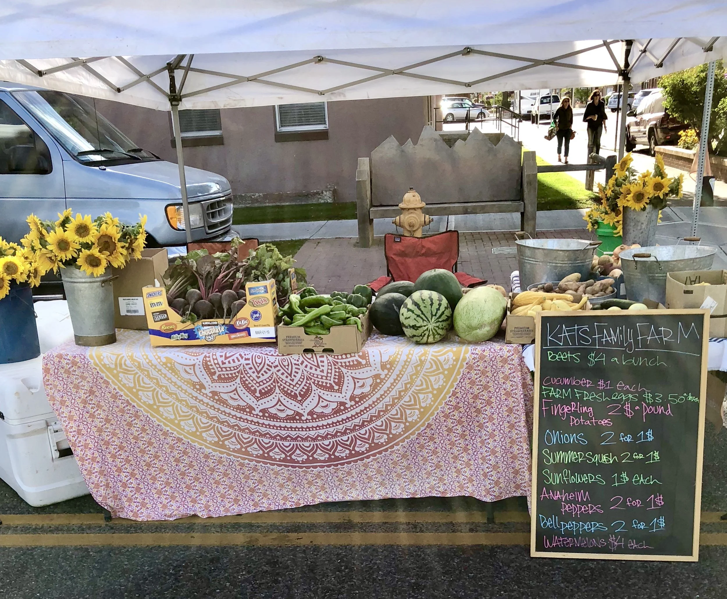 Early morning set up. Watermelons are ready to go. Ask about our varieties.